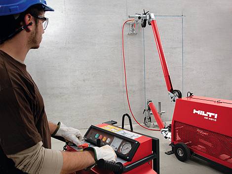 Eine große Palette von Zubehör ergänzt die Maschine und ermöglicht Schnitte in unterschiedlichen Dimensionen, Bündig- und Tauchschnitte. Die Steuerung erfolgt über HILTI-Fernbedienung.