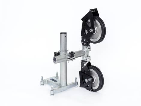 Die patentierte Seilführung dient der Umlenkung des Sägeseiles von der Maschine zum Schnitt und ist seilabsprungsicher ausgeführt. Teleskopische Schutzrohre zur Abdeckung der freien Seillängen können einfach fixiert werden - für höchste Sicherheitsansprüche.