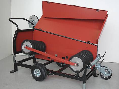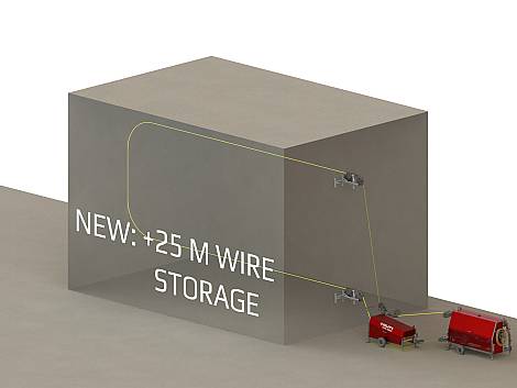 Der Zusatzspeicher ermöglicht die Aufnahme von bis zu 25 m Sägeseil zusätzlich zum Speicher der Seilsäge. Verwendung des Zusatzspeichers in Kombination mit DSW 3018-E.