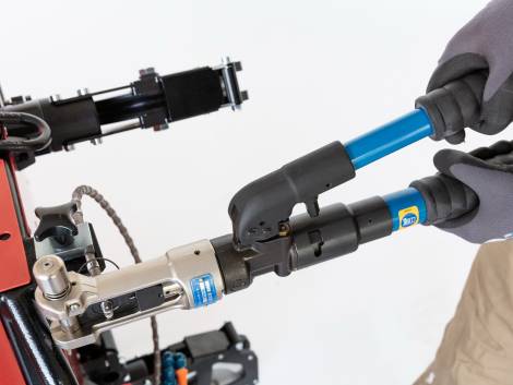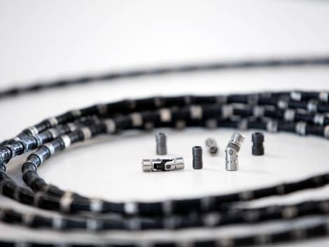 Unser Top-Verbinder kann geöffnet und geschlossen werden, es entfällt das Kürzen des Sägeseils und der Verlust wertvoller Sägeperlen. Der Verbinder wird mit Hilfe einer Presszange auf das Seil aufgepresst.