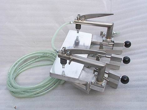 This device is designed for soldering diamond segments on huge saw blades in natural stone applications. Repair work can be done directly on the blade of the device for easy handling.