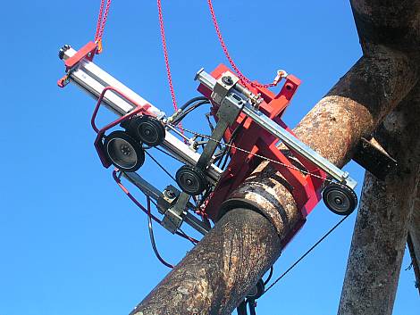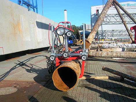 This pipe saw was developed for cutting steel pipes with the possibility of clamping the device directly to the cut.