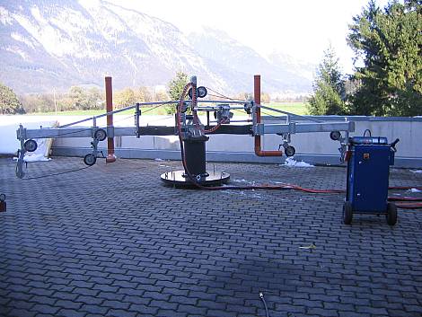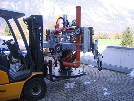 This wire saw was designed to customers requirements for cutting the brick linings of a converter in steel production (basic oxygen process-converter). The circle saw was used for tapering the converter floor.